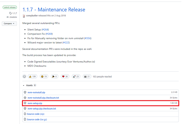 因為我是Windows系統,所以到 nvm-windows 的github下載