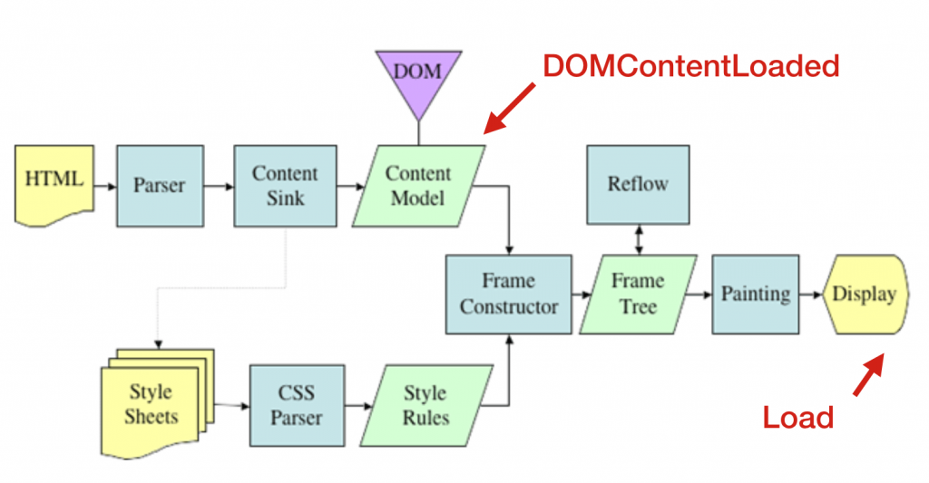 兩者的差異在load 事件是在網頁「所有」資源都已經載入且畫面渲染完成後才會觸發,