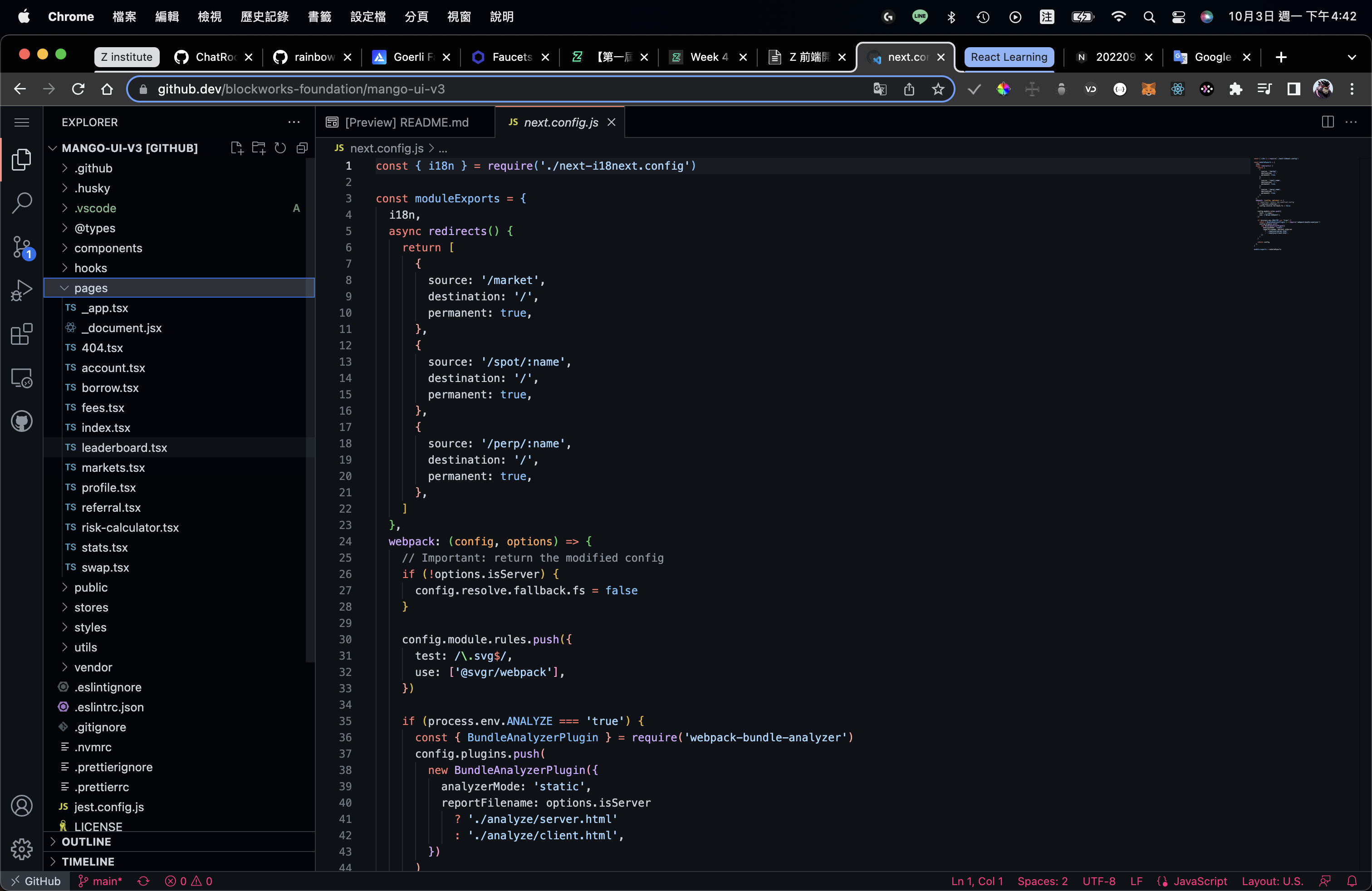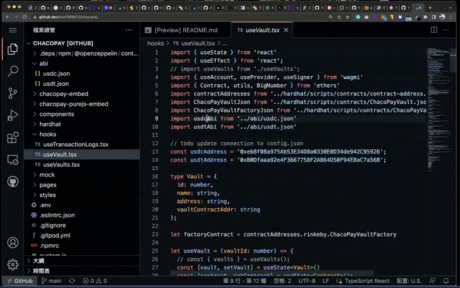 例如:Next.js + ethers.js,點開連結在 GitHub 上按下鍵盤上. 可以直接開啟 vs code 的 preview 模式。